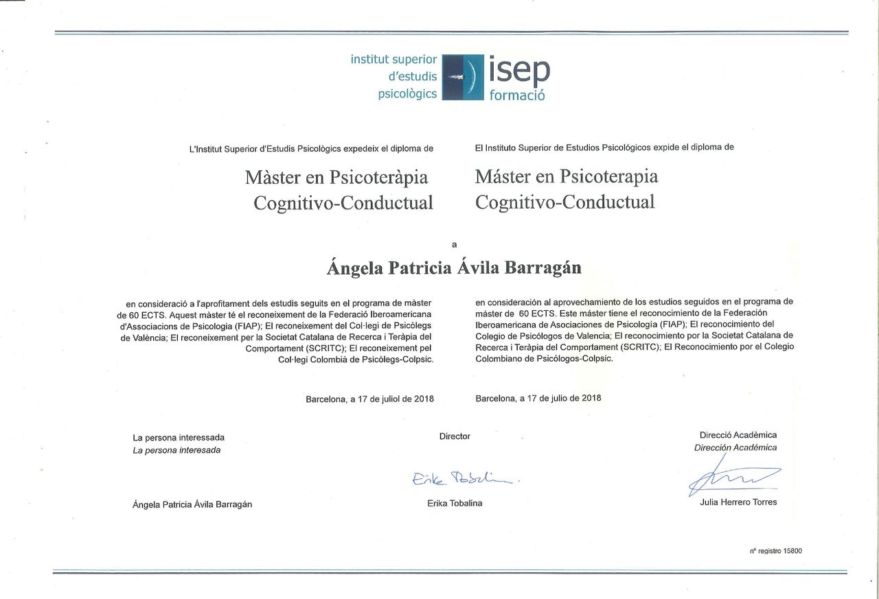 Psicóloga experta en casos de ansiedad, depresión, dependencia emocional, heridas del pasado, desarrollo personal, violencia de género, duelo, psicooncología y cuidados paliativos.
